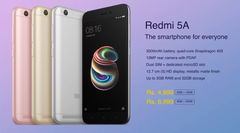 Xiaomi официально представила Redmi 5A - «смартфон для всех». Смартфон был впервые анонсирован в Китае в октябре, а теперь он выпущен в Индии с некоторыми характеристиками под индийский рынок.