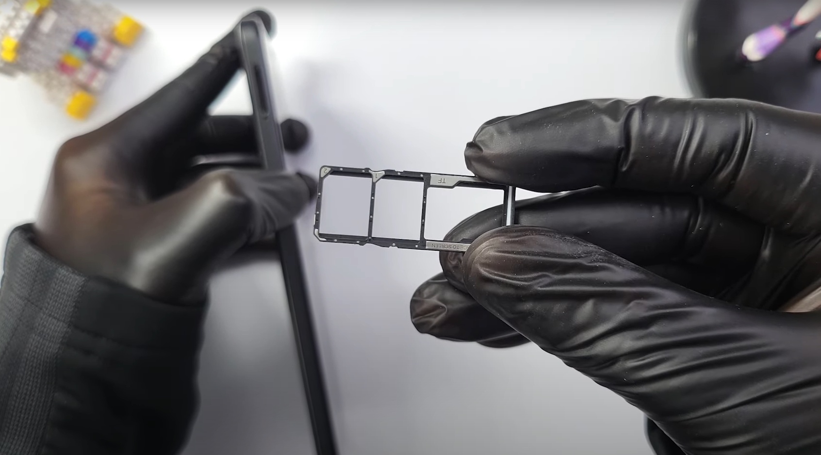 На правом торце корпуса расположена качелька регулировки громкости и кнопка питания с встроенным отпечатком пальца. Этот способ разблокировки экрана проверен временем и надёжен. Сканер работает быстро и безошибочно. С противоположной стороны корпуса расположили разъём для SIM и microSD. В него можно можно одновременно вставить две симки и одну карточку памяти.