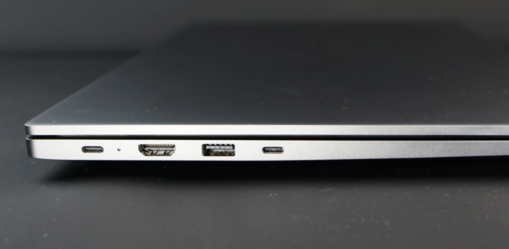 Корпус Xiaomi Book Pro 16" 2022 очень тонкий — всего 14,9 мм. Весит устройство тоже сравнительно немного — 1,8 кг. В ноутбук установили полноразмерную клавиатуру с четырьмя режимами подсветки. Из разъёмов пользователи найдут на корпусе два Type-C и Thunderbolt 4. Последний имеет такую же конфигурацию, как Type-C, но обладает большей пропускной способностью — до 40 Гбит/с. Полноразмерных привычных разъёмов USB у ноутбука нет, но в комплект положили переходник на него с Type-C.