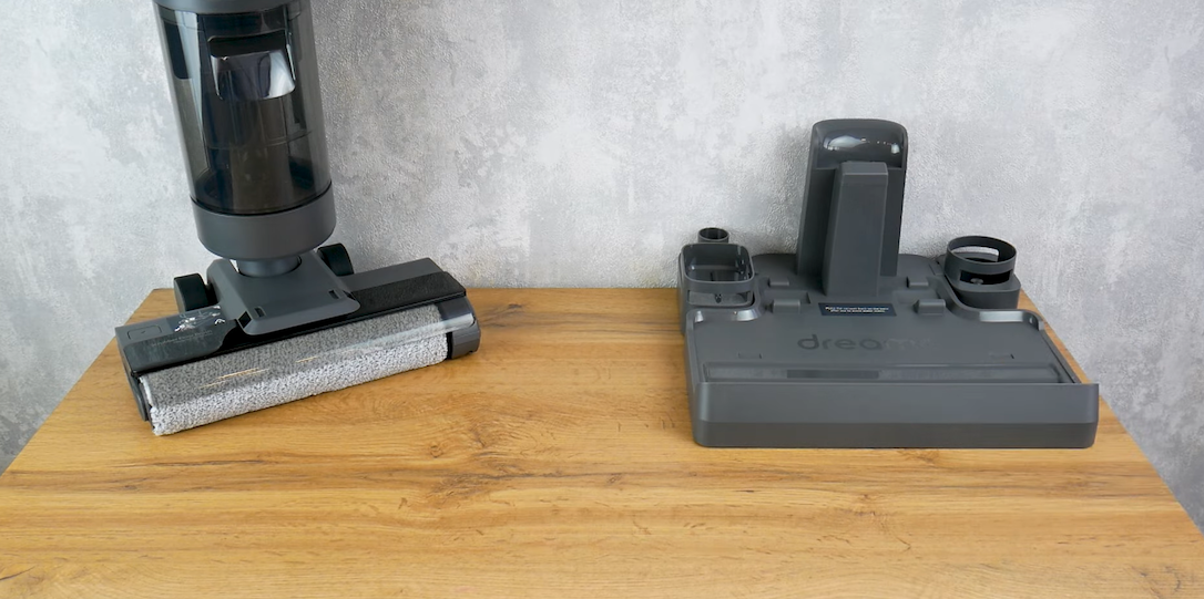 Пылесос и его подставка. Иллюстрация: Ютуб-канал ROBOTOBZORРезервуары для воды
