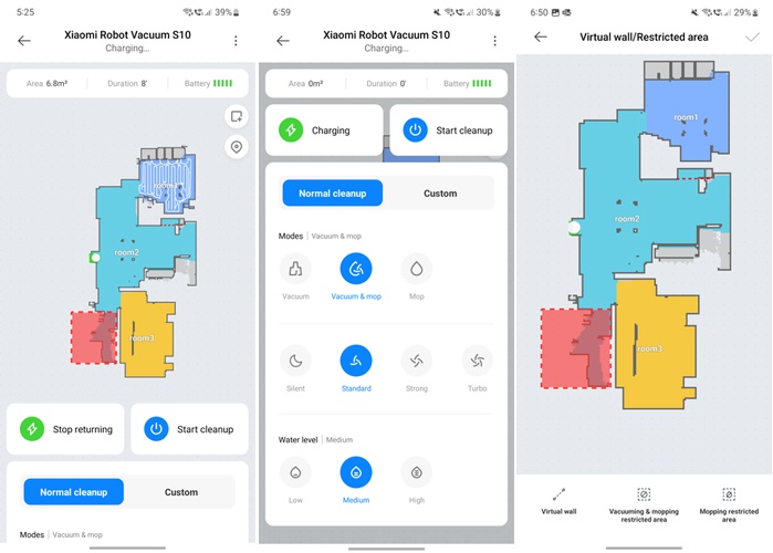 В приложении можно задать режим уборки, а при помощи карты направить пылесос в нужную комнату. Источник: digitalcitizen.lifeСухая уборка возможна в одном из четырёх режимов, который выбирают в приложении: